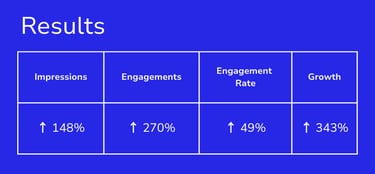 Across both chapters, refreshed branding and a unified content strategy drove meaningful growth: a 343% increase in audience size, 270% increase in engagements, and a 148% increase in impressions, setting a new benchmark for their social performance.
