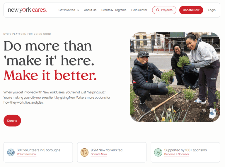 After 35 years, New York Cares underwent a year-long rebrand of their identity and web presence.